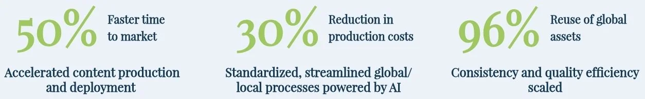 Through a global transformation, we helped redesign the content ecosystem - enabling brand teams to deliver modular, AI-enabled, customer-centric content at scale. By embedding new ways of working, co-creation models and standardized frameworks, we unlocked faster execution, lower costs, and significantly improved content effectiveness across global and local teams.